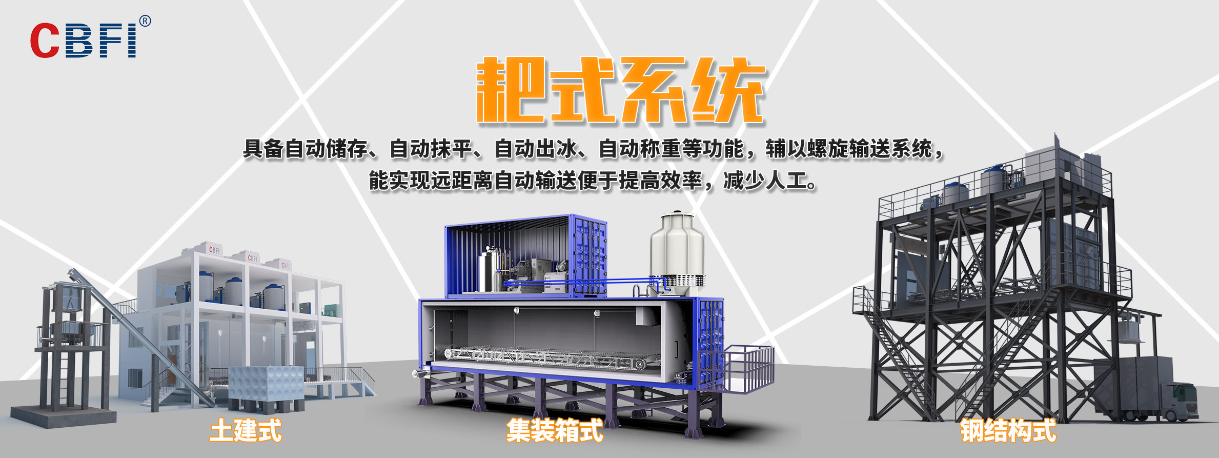 廣州冰泉制冷設備有限責任公司(商標CBFI),大型氟制冷制冰設備行業(yè)開拓者,是一家立足國內、面向全球,集大型食用制冰設備、大型工業(yè)制冰設備、高端商用制冰機、成套制冰系統(tǒng)的研發(fā)、設計、制造、銷售、售后服務于一體的創(chuàng)新創(chuàng)業(yè)型高新技術企業(yè),是大型冰廠和冷庫工程解決方案服務商。